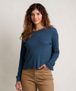 Toad & Co Women’s Foothill Pointelle Long Sleeve Crew | Kelp Stripe