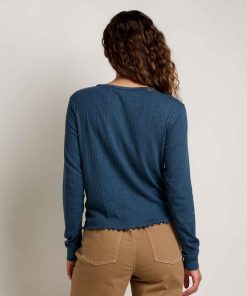 Toad & Co Women’s Foothill Pointelle Long Sleeve Crew | Kelp Stripe