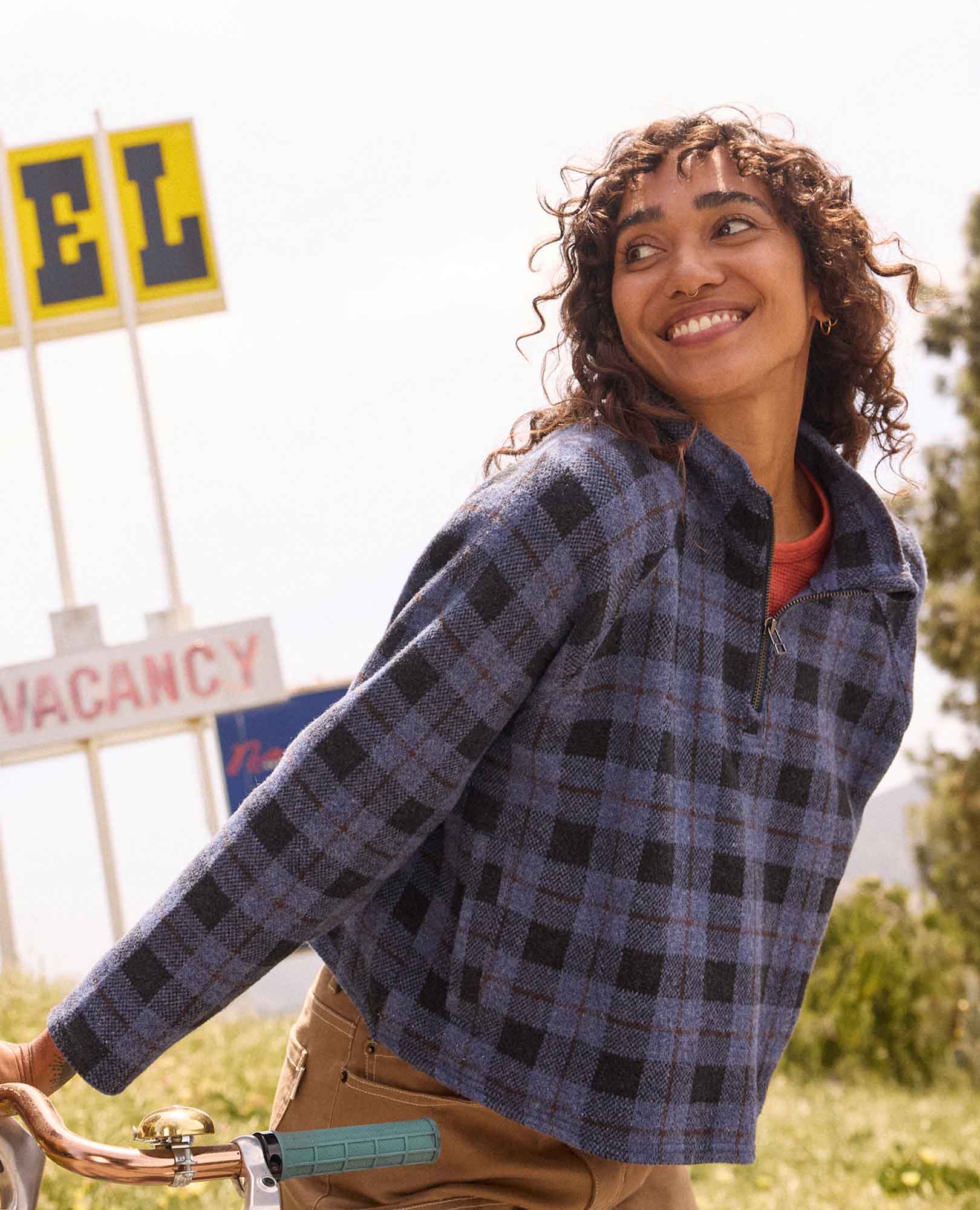 Fit: Boxy fit, stand collar, 1/4 zip, raglan sleeve, 21.5 inch length