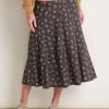 Fit: A-line silhouette, partial elastic waistband, gored skirt, midi length, 33.5 inch length