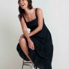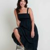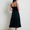 Fit: Tiered silhouette, square neck, bra-friendly adjustable straps, smocked waistband, midi length, 49 inch length